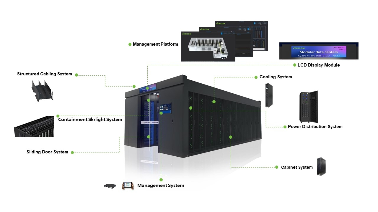 Vericom 冷通道封闭解决方案采用 All-in-Room设计,是一种标准化、模块化的平台,具备高度灵活性,可满足多种应用需求。该方案结构坚固,内置安全、防护与可扩展功能。其节能型平台专为快速部署与安装而设计,既能降低前期投资,又能减少运营成本。