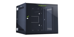 VERICOM VW7系列单开壁挂式挂墙柜是通信行业标准硬件的理想之选,适用于包括边缘计算所需的网络交换机和配线架等网络解决方案。这款紧凑型 19 英寸机柜适用于小型网络,可放置于桌下或桌面,也可壁挂或立式安装。其小巧的尺寸优势显著,采用冷轧钢全焊接框架,承重高达 50 公斤/110 磅,并配备 180 度旋转式前门,方便连接线缆。机柜出厂时已完全组装,可显著缩短设备安装时间。